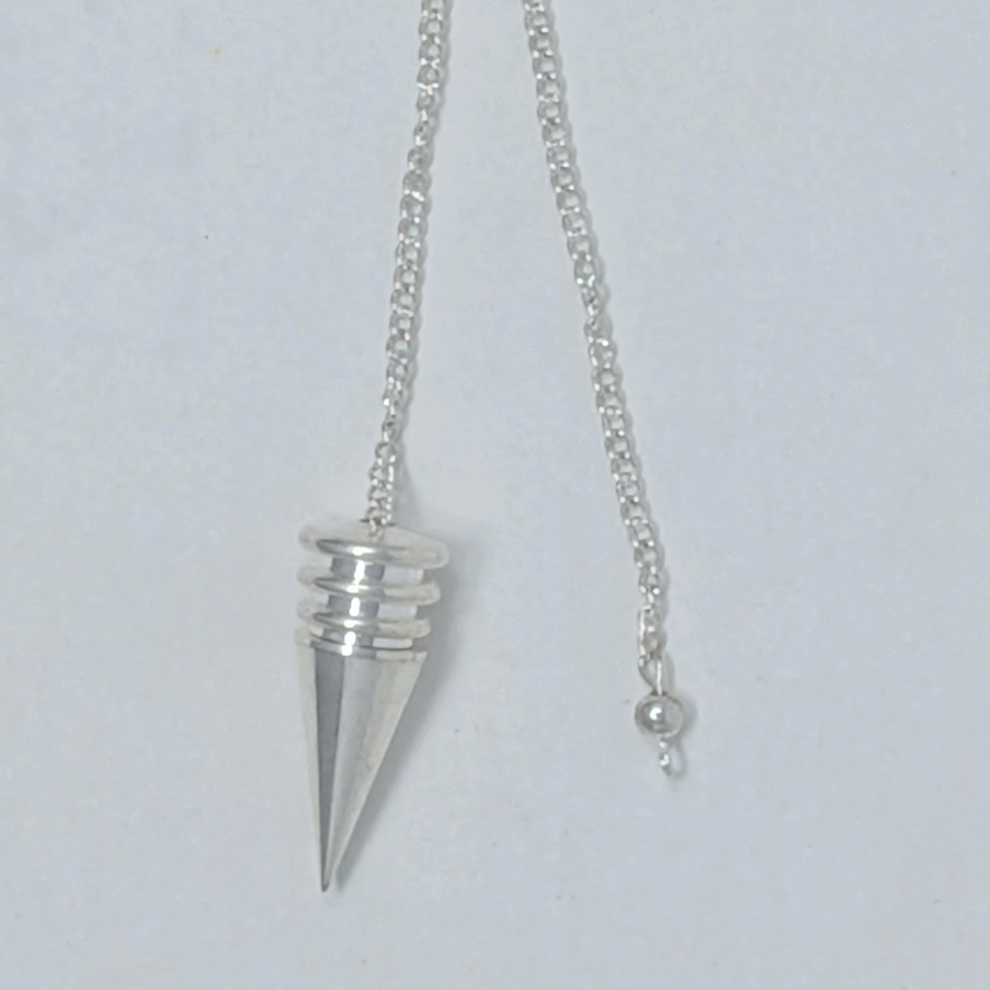 This pendulum is made entirely of metal and finished with a small metal bead