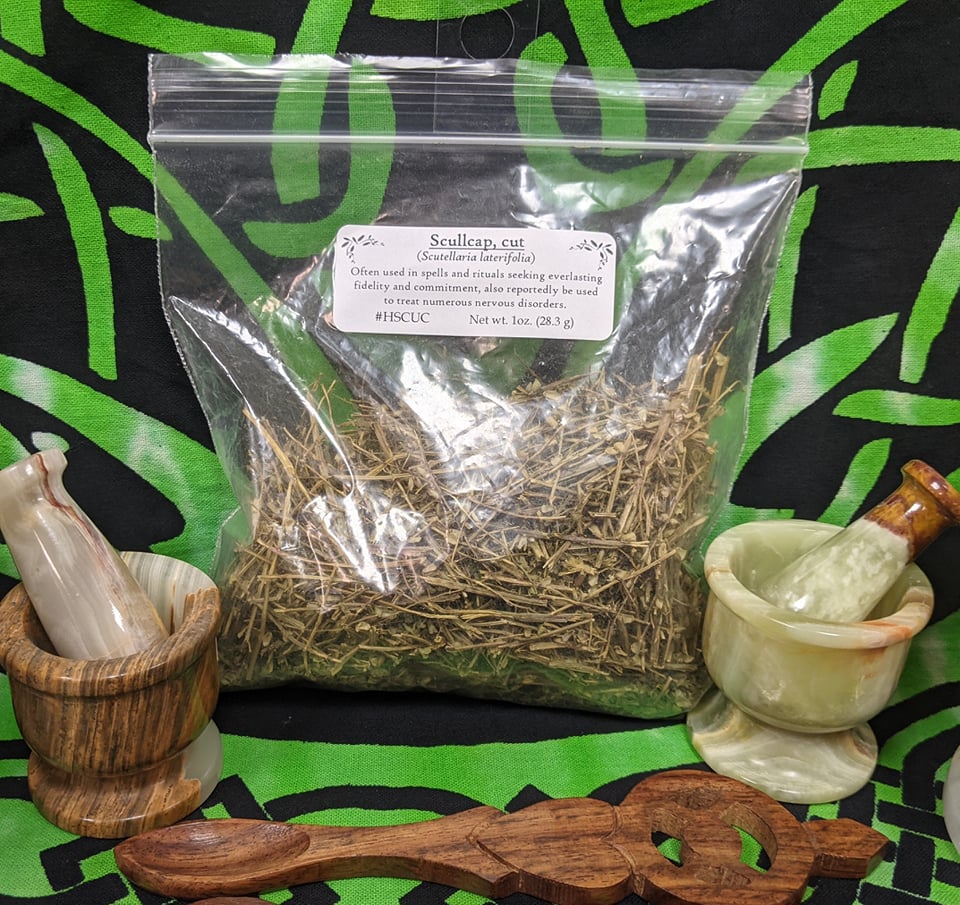 Used to create topical ointments and other medicinal creations, Scullcap received its name because of how it resembled the metal helmets worn by Medieval Soldiers. Magical purposes include relaxation, peace, binding oaths, consecrating vows and commitments, stress, and nightmares. 1 oz package. Not for consumption as may not be food grade.