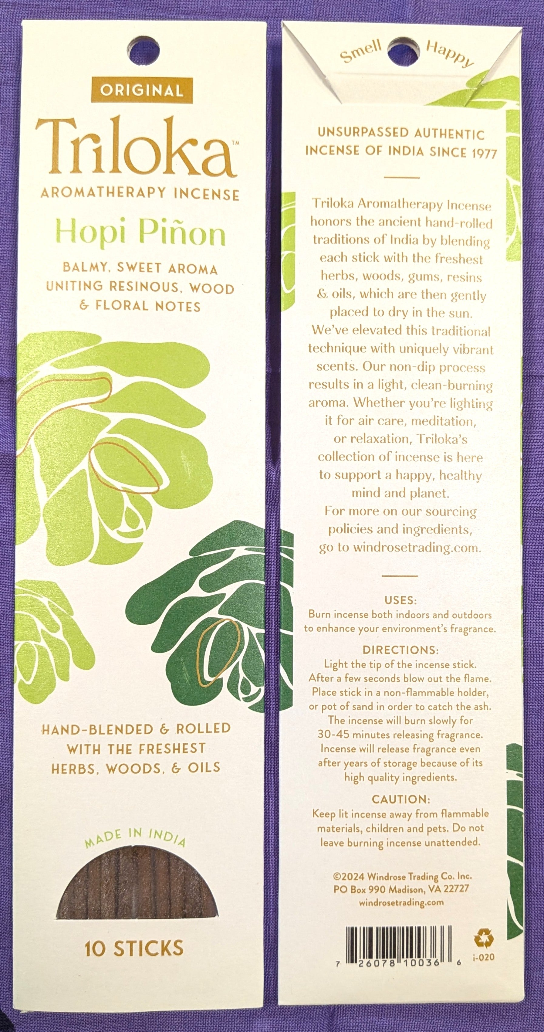 A staff favorite brand, Triloka’s environmentally conscious and responsibly sourced incense is hand-rolled on bamboo sticks - not dipped – and crafted with aromatic herbs, woods, flowers, essential oils, and aromatherapy fragrances. This careful craftsmanship produces a fresh, clean, light burning fragrance.
